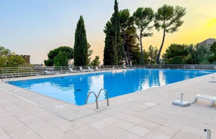 Dans une copropriété de très bon standing, sécurisée avec PISCINE, POOL HOUSE, TERRAIN DE TENNIS et ESPACES VERTS, 2P de 53,14 m² au 1er étage comprenant un grand séjour lumineux avec placard et cuisine américaine aménagée et équipée, une chambre avec placard et une salle de douche avec WC. Calme absolu. Exposition Sud/Ouest, vue verdure dégagée, sans vis à vis. Climatisation. Une cave et un parking collectif viennent compléter ce bien. Exclusivité !