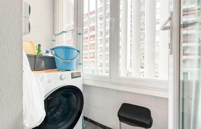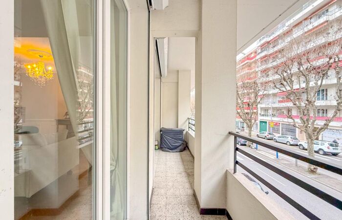 Au 1er étage d'un immeuble des années 70, bel appartement 2 pièces de 57 m² avec grand balcon filant de 8m2.
