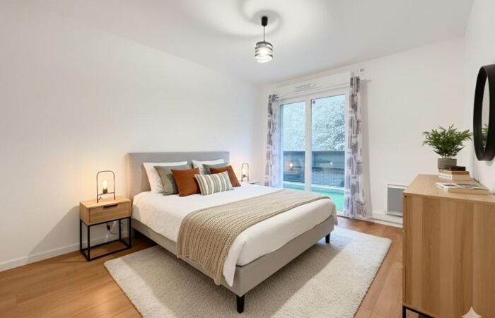 Il est composé d'un séjour avec cuisine aménagée et équipée ouverte, donnant sur une terrasse, de deux chambres, d'une salle d'eau et d'un WC indépendant.