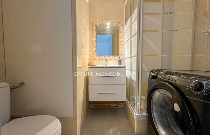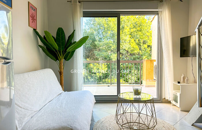 Dans une résidence sécurisée avec piscine, l'Agence du Cap vous propose un appartement 2 pièces comprenant : un séjour, un coin cuisine, une salle d'eau avec WC, une chambre en mezzanine ainsi qu'une terrasse d'environ 6 m² offrant un aperçu mer.