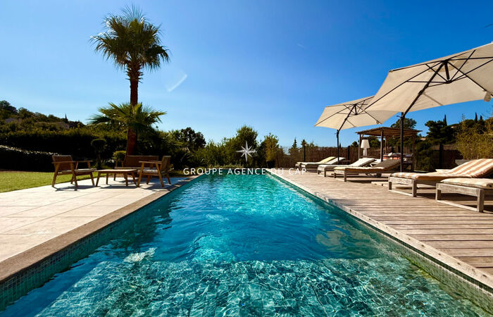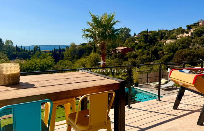 Aux Issambres, dans un environnement paisible et verdoyant, cette villa entièrement rénovée séduit par son élégance et sa vue mer sur le golfe de saint Tropez.
