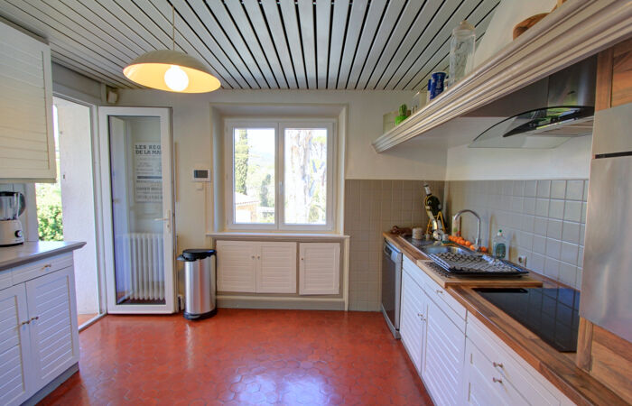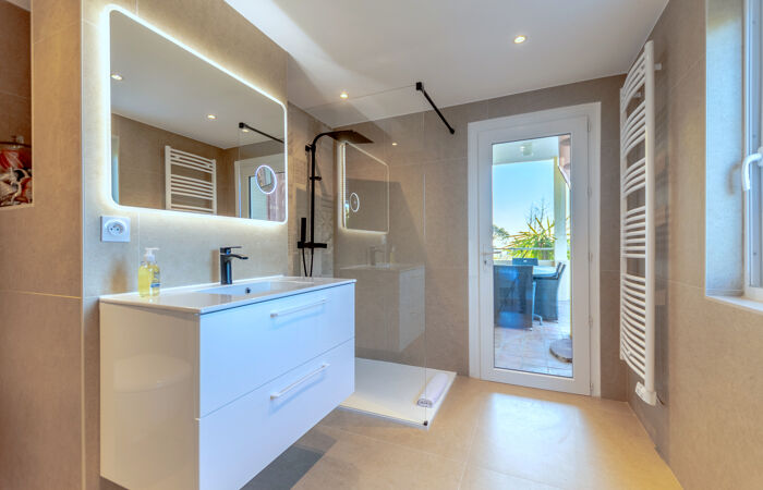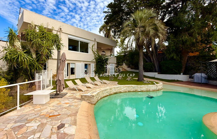 A pied des plages et du centre, villa de charme de 390 m² avec vue dégagée jusqu'à la mer composée de 2 parties distinctes.