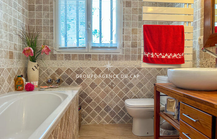 Dès l'entrée, l'architecture soignée, la luminosité omniprésente et les généreux espaces de vie séduisent immédiatement. De plain-pied, les pièces à vivre s'ouvrent harmonieusement sur de vastes terrasses, créant une atmosphère chaleureuse et conviviale. La cuisine, parfaitement agencée, bénéficie d'un accès direct à une terrasse abritée, idéale pour des déjeuners face à la mer.