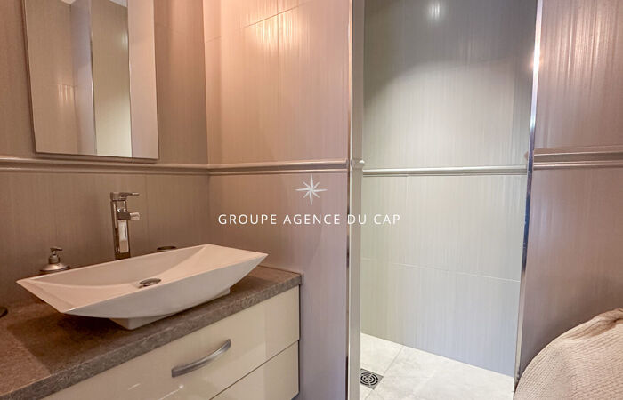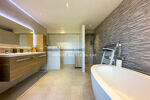Le rez-de-jardin accueille un deuxième appartement comprenant trois chambres et deux salles de douche, avec un accès direct aux terrasses et à la piscine.
