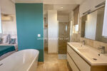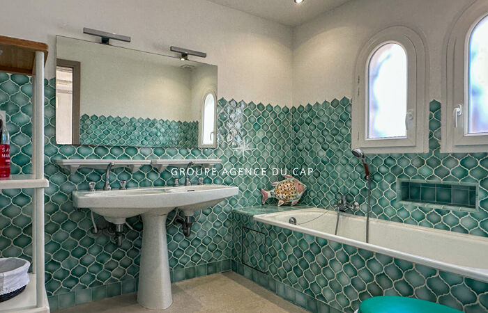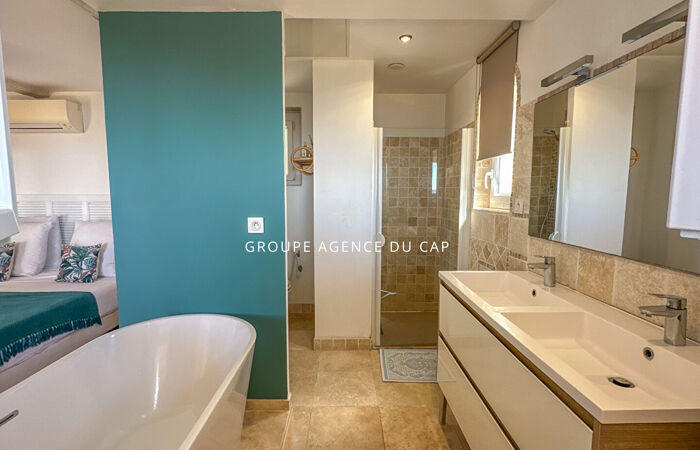 Elle propose une belle pièce de vie prolongée par des terrasses ombragées, une master complète avec son espace détente, trois belles chambres en suites et un superbe pool house complèteront ces espaces ouverts sur une piscine à débordement de 10.5*4.5 au sel et chauffée.