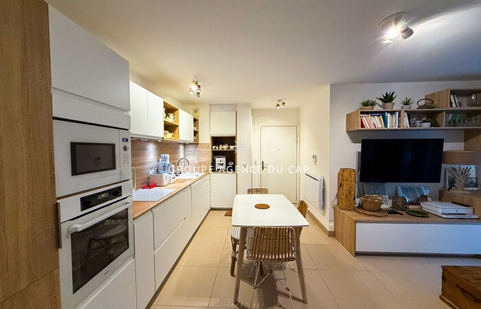 Idéalement situé à proximité immédiate du centre-ville et 80 m de la plage, ce bel appartement 2 pièces de 44 m² en rez-de-jardin se trouve au sein d'une résidence parfaitement entretenue, offrant un cadre de vie à la fois confortable et recherché.