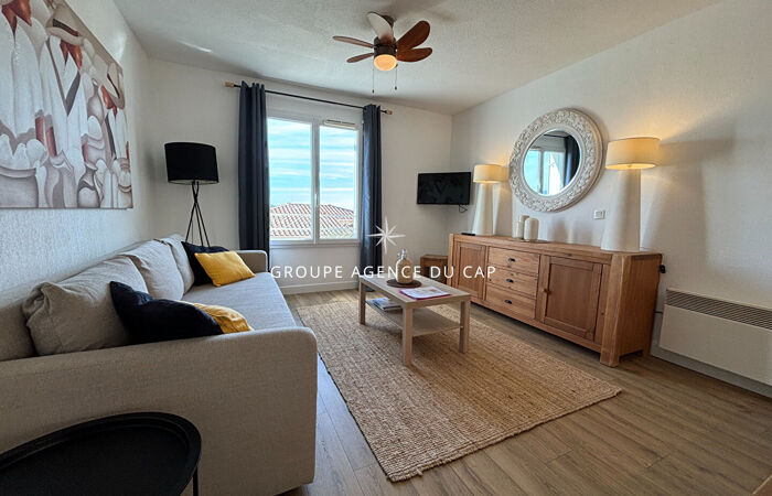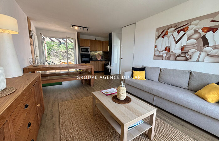 L'Agence Du Cap vous présente un appartement entièrement rénové à la fin de 2023. Ce bien traversant comprend trois chambres, un salon spacieux, une salle à manger et une cuisine ouverte entièrement équipée. La salle de bain est équipée d'une douche à l'italienne, avec des toilettes séparées. L'accès au jardin et à la terrasse se fait de plain-pied depuis l'appartement. La chambre principale et la salle à manger bénéficient chacune d'un balcon offrant une vue sur la mer.
