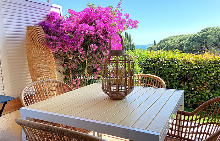 Situé dans une résidence sécurisée avec piscine, ce superbe appartement de 2 pièces entièrement rénové offre une vue imprenable sur la pointe des Sardinaux.