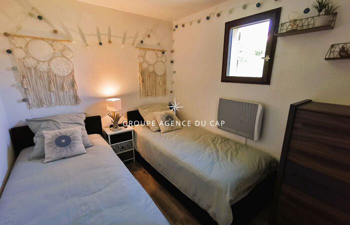 Il se compose de deux chambres, d'une salle d'eau, de WC séparés, ainsi que d'une pièce de vie lumineuse avec cuisine aménagée, ouverte sur une agréable terrasse avec vue mer.