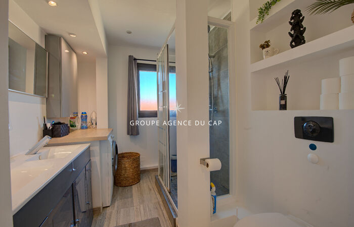 Situé au dernier étage d'une résidence sécurisée, cet élégant appartement de 65 m² bénéficie d'un emplacement privilégié, à proximité du centre et directement face aux plages.