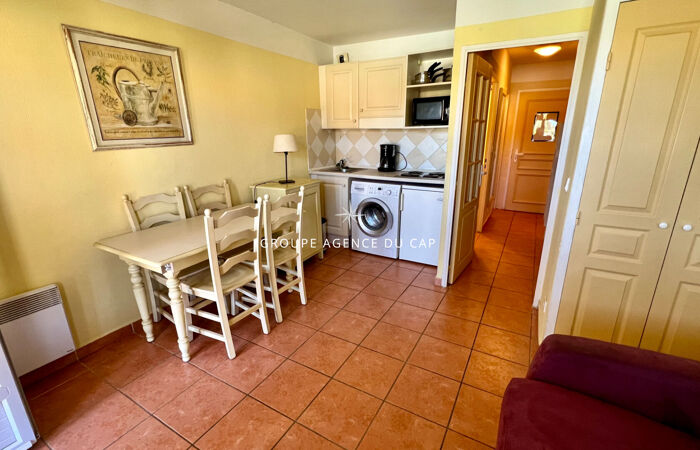 Ce charmant studio cabine de 23 m² est situé dans une résidence sécurisée avec piscine, terrain de tennis et terrain de pétanque. Il se compose d'une entrée avec lits superposés, d'une salle de bains, d'un séjour avec cuisine équipée et de toilettes séparées. Une agréable terrasse donnant sur la piscine vient compléter ce bien. Vendu meublé, il est parfait pour un pied-à-terre ou un investissement locatif. Ne manquez pas l'opportunité de le visiter !