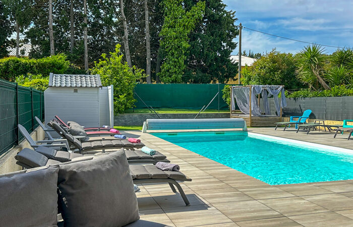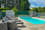 Au rdc vous découvrirez une spacieuse pièce de vie lumineuse donnant sur un extérieur aménagé avec soin, comprenant une terrasse, un pool house, une douche extérieure et une piscine chauffée . une buanderie, un WC indépendant et un garage complètent ce bien.