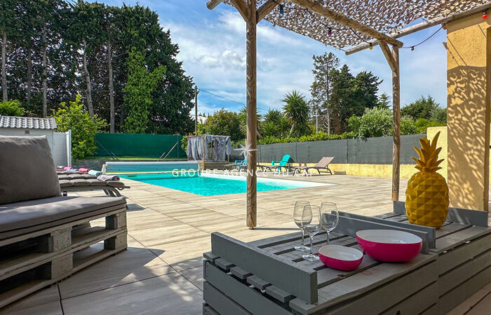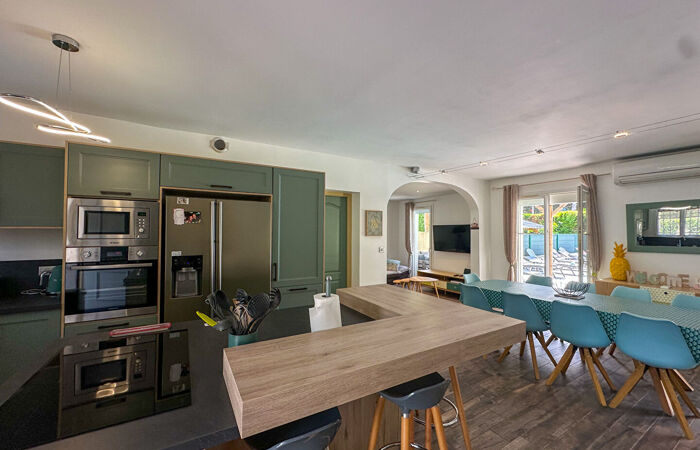 Située a seulement 3,5 km des plages et quelques pas des commerces, cette charmante villa mitoyenne par le garage , offre un cadre de vie agréable et fonctionnel.