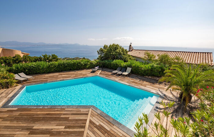 Offrant une vue mer panoramique sur la baie de St Raphaël, cette résidence exclusive de seulement 4 appartements avec piscine présente un superbe 3 pièces de 112 m², idéalement situé en rez-de-jardin.