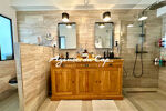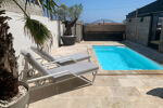 Il propose une superbe pièce de vie lumineuse avec de larges baies vitrées ouvertes sur terrasse et piscine au sel chauffée, une cuisine contemporaine équipée et aménagée, buanderie, 3 chambres et une salle de douche.