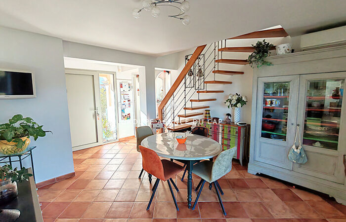 Les prestations sont de qualité : double vitrage, climatisation réversible dans toute la maison, panneaux solaires, baies vitrées à galandage, poêle à granulés, carport, piscine avec couverture coulissante. La propriété permet le stationnement de quatre véhicules.