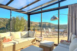 Niveau principal : Un séjour lumineux prolongé par deux vérandas façon jardin d'hiver, offrant une vue dégagée sur les collines et un aperçu mer. Une cuisine ouverte sur le séjour, ainsi que trois grandes chambres. Garage et abri voiture.