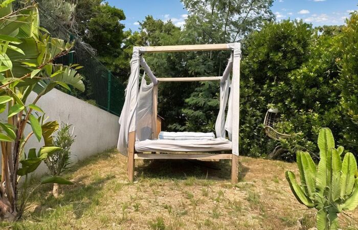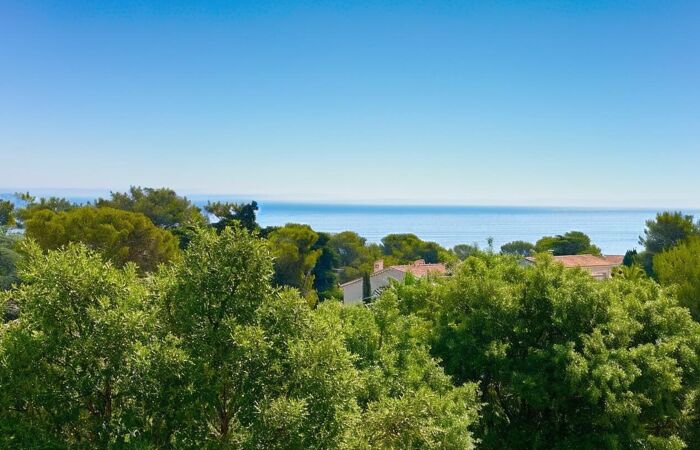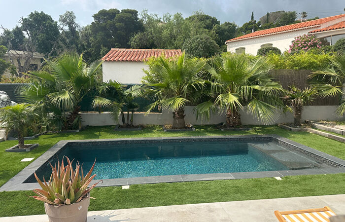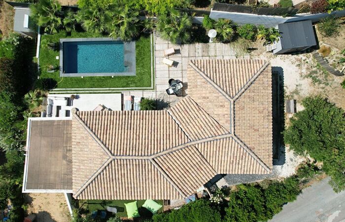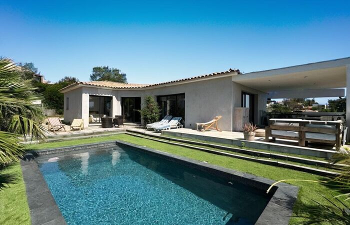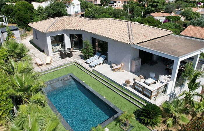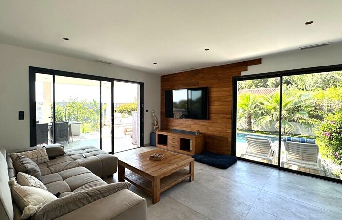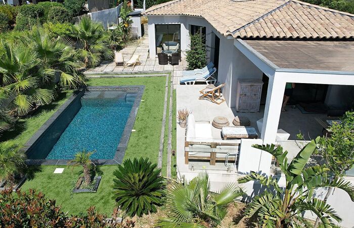 Magnifique propriété aux lignes contemporaines, à pied du centre-ville de Saint-Aygulf, offrant un cadre de vie calme et une vue mer.