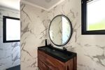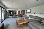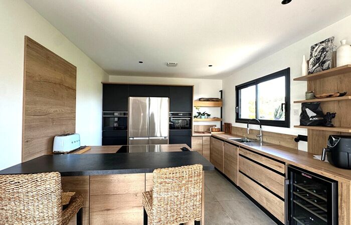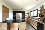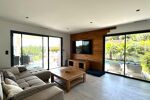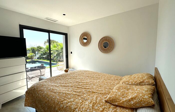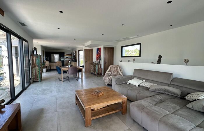 Elle propose une spacieuse pièce de vie exposée sud avec cuisine américaine et de grandes ouvertures en baies vitrées donnant sur une terrasse couverte avec cuisine d'été, ainsi que sur la piscine. Une suite parentale complète cet espace.