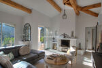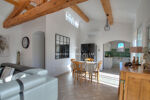 La villa dispose d'un jardin paysager, propice à la détente. La pièce de vie, spacieuse et conviviale, met en valeur une charpente apparente en bois qui confère à l'ensemble une touche authentique. 3 chambres en suite, une cuisine ouverte donnant sur terrasse surplombant une jolie piscine à débordement.