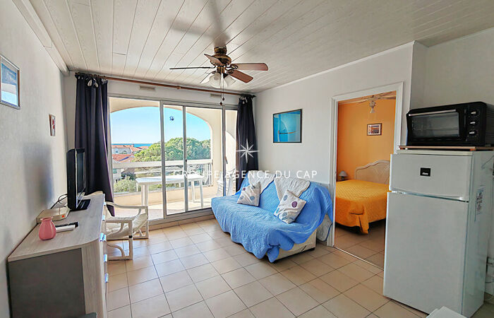OFFRE AU PRIX RECUE - En exclusivité, appartement de 2 pièces en étage avec ascenseur et bénéficiant d'une jolie vue mer ! En bon état général, il comprend un séjour avec cuisine ouverte donnant sur une terrasse couverte, une chambre avec placards et une salle d'eau avec wc. La résidence récemment ravalée et parfaitement entretenue est agrémentée d'une piscine et de jolies jardins. Ce bien comprend un parking privé et une cave. Idéal 1er achat, pied à terre ou location saisonnière.