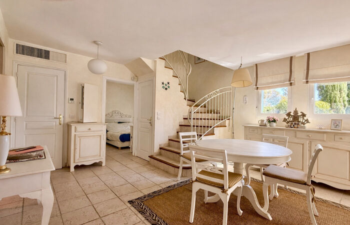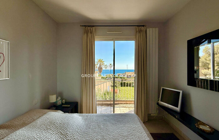 À proximité immédiate des plages de sable de la Nartelle, dans une petite copropriété intimiste composée de seulement 6 appartements et 4 villas individuelles, découvrez cette villa vue mer confortable en excellent état général.
