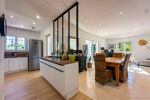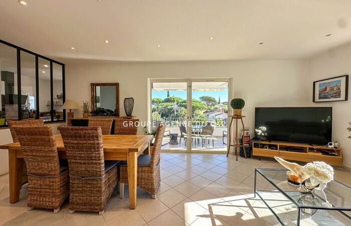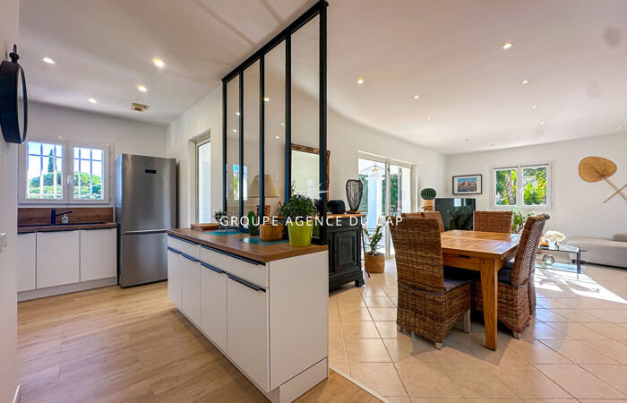 Idéalement située à quelques mètres du centre ville et des plages de Sainte Maxime. Vous découvrirez au niveau principale, une lumineuse pièce de vie comprenant un salon-séjour et une cuisine entièrement rénovée, un toilette invité ,ainsi qu'une suite parentale et un accès direct au garage.