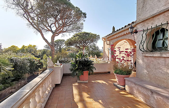 A vendre, proche de la mer et du centre du village des Issambres. Villa style 'provençale' sur 3 niveaux répartis de la manière suivante. Partie principale en rez-de-chaussée 3 pièces : un séjour double avec cheminée, cuisine d'été ouverte sur une terrasse Sud, cuisine, 2 suites avec salle de bains/douche ouvertes sur terrasse. Au 1er étage : 3 pièces : séjour, cuisine, terrasse, solarium fermé, 2 chambres, salle de bains et rangements + grenier aménageable. En rez-de-jardin : 2 pièces avec salon, cuisine d'été ouverte sur le jardin et terrasse. Abri voitures, garage double et sous-sol.. Piscine possible.