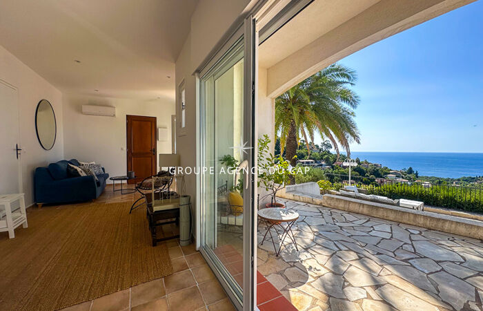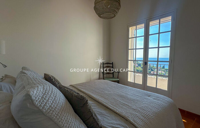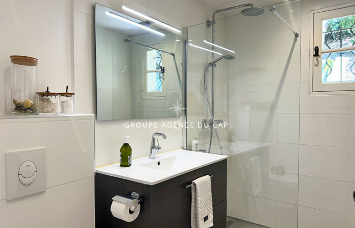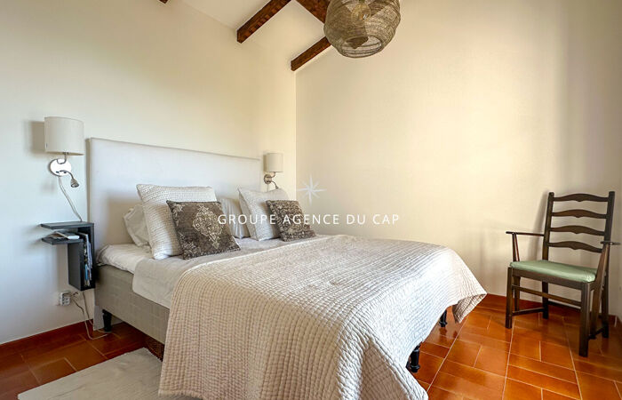 Cette charmante villa provençale, entièrement rénovée et climatisée, bénéficie d'une exposition plein sud et d'une magnifique vue mer. Le niveau principal offre un vaste séjour ouvrant sur une terrasse, une cuisine équipée, deux chambres, deux salles d'eau avec toilettes ainsi qu'une chambre en mezzanine donnant accès à une agréable tropézienne. Le niveau inférieur accueille un appartement indépendant comprenant un salon avec cuisine américaine aménagée, une chambre principale, une chambre cabine, des rangements et une salle d'eau avec toilettes. L'extérieur séduit par un terrain paysager sans vis-à-vis, une piscine au chlore de 4x8 mètres et des emplacements de stationnement pour voitures. Une propriété pleine de charme, idéale pour profiter de la Côte d'Azur en famille ou entre amis.