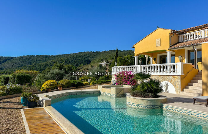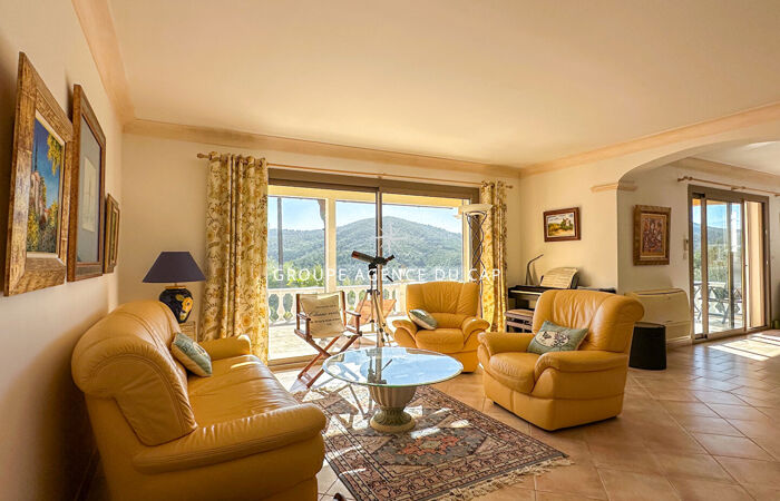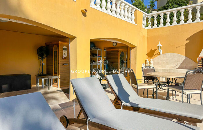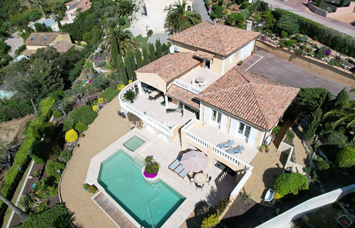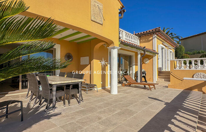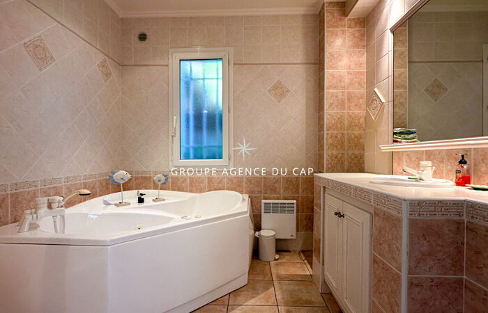 Très belle villa d'environ 177m² en parfait état, proposant une suite parentale avec sde et dressing, une triple séjour avec salon tv et coin cheminée, 2 chambres sur terrasse avec une salle de bains balnéo et une douche, une suite avec dressing et sde. Grandes terrasses en travertin avec vue mer, dont une partie couverte. L'espace piscine comprend un bassin 10x5m au sel et chauffé, tout automatisé, ainsi qu'un petit bassin pour les enfants. Poolhouse avec douche, wc et Sauna !