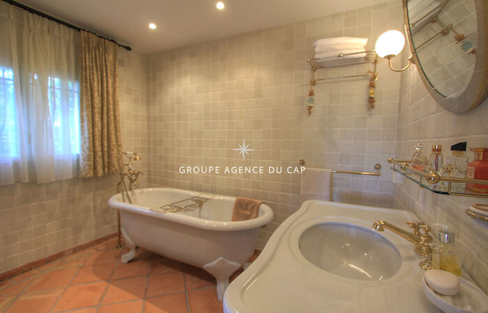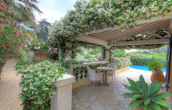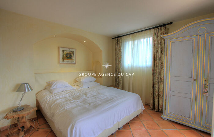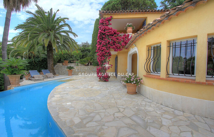 Proche des plages et des premiers commerces, à vendre très belle villa provençale entourée d'une superbe jardin méditerranéen. Elle propose une entrée, salon avec cheminée, salle à manger sur terrasse couverte, cuisine semi-ouverte équipée et aménagée, une chambre avec salle de douche et wc. A l'étage, une grande chambre ouverte sur une terrasse avec vue jusqu'à la MER, vaste dressing attenant et salle de bains. Piscine de forme libre de 9*5, garage (avec de nombreux aménagements). Dans le jardin, plusieurs espaces sont aménagés .