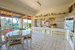 Le jardin paysager entoure une belle piscine, parfait écrin pour profiter du calme ambiant. Un grand garage en sous-sol, un portail électrique, le double vitrage ainsi que la climatisation réversible viennent compléter les prestations de cette villa aux accents provençaux.