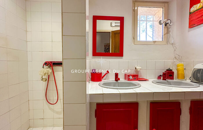Dans un domaine sécurisé, à quelques minutes à pied des plages renommées de La Nartelle, découvrez cette charmante villa de plain-pied d'une superficie d'environ 167 m², érigée sur un terrain plat et arboré de 1 700 m².