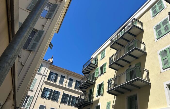 EXCLUSIVITE 2 PIECES / NICE CARRE D'OR Nice Carré D'or, à deux pas de la place Masséna et à quelques minutes à pied du vieux Nice et de la ligne 1 du tramway, dans une résidence qui réunit tout le confort de la modernité et l'élégance classique d'une architecture qui respecte le patrimoine de la ville. Tout est à portée de main, marché aux fleurs, centre commercial, plages... Le standing et les prestations sont à la hauteur de l'emplacement situé dans l'un des quartiers les plus prestigieux de Nice. 2 pièces de 43m²se composant d'une entrée, d'un séjour, d'une chambre, d'une salle de bain, de rangements, balcon de 4m² au 4ème étage avec ascenseur. Porte palière blindée, vidéophone, climatisation réversible, cloison séparative de 72 mm, carrelage haut de gamme, sèche serviette, wc suspendu. Possibilité Garage privatif en sus 80000 euros. Frais de Notaire réduits.Vendu meublé !