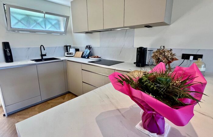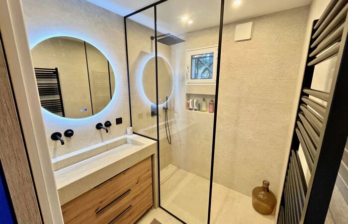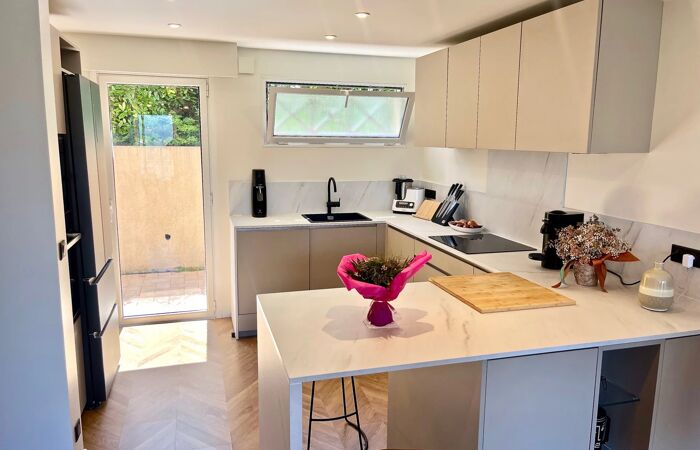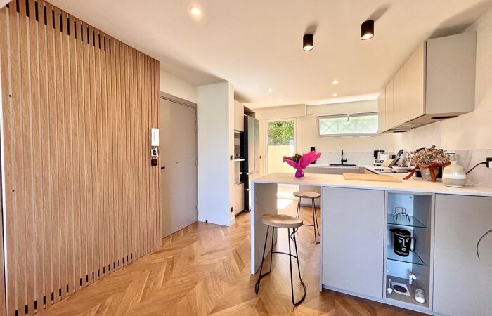 3 PIECES / SAINT ANTOINE GINESTIERE 3 pièces dans petite copropriété de bon standing, proche écoles, commerces et bus. Au calme 3P 65 m² avec deux terrasses et double exposition. Il possède de très belles prestations, climatisation réversible, cuisine équipée avec coin repas, salle d'eau à l'italienne avec fenêtre. Toutes les pièces principales accèdent sur une des deux terrasses. Il offre une vue panoramique sur les montagnes, les Baous de Saint Jeannet, ainsi que sur les jardins de la copropriété admirablement fleuris. Une spacieuse cave complète ce bien ainsi qu'un parking privé.