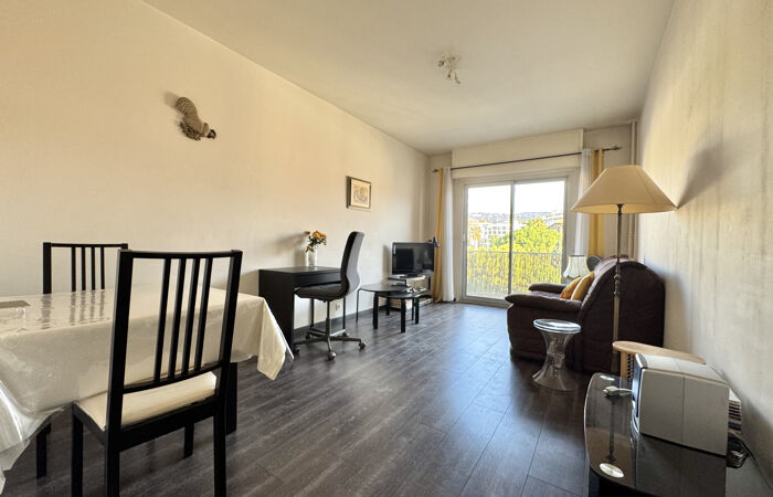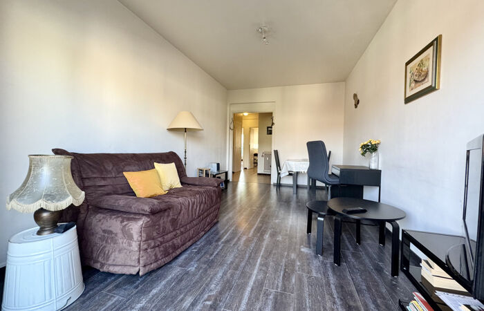 Au troisième étage d'un bel immeuble de standing en cours de ravalement, beau F2 traversant de 55m2 avec jolie vue dégagée.