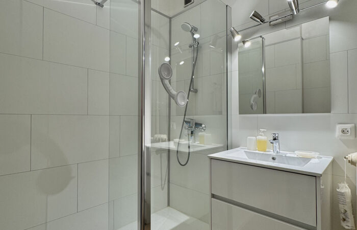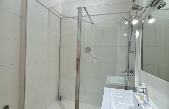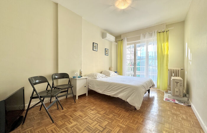 Très lumineux. Chambre au calme absolu et climatisée. Salle d'eau refaite à neuf, grande cuisine équipée. Facades avant et arrière payées et en cours de ravalement. Possibilité de transformation en F3 avec deux chambres sur cour au calme absolu et coin cuisine dans le séjour.