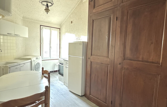 Au 5ème et dernier étage (avec ascenseur) d'un immeuble ancien, charmant F2 mansardé composé de : entrée, séjour, chambre, cuisine séparée, dressing, petite salle d'eau avec WC et balcon.