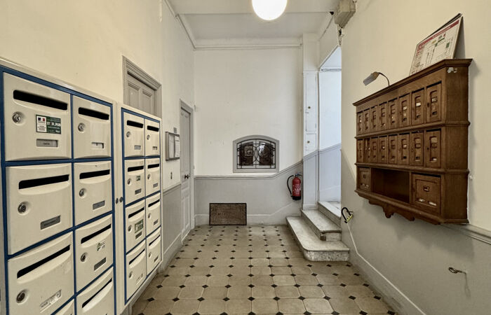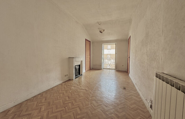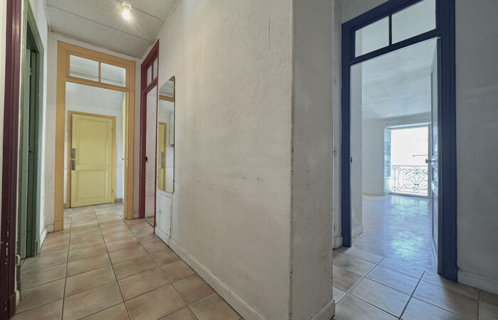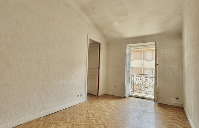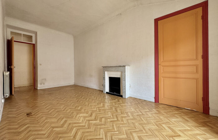 Beau potentiel de rénovation en grand F3 avec 2 chambres côté cour et double séjour côté rue ou transformation en petit F4 possible pour placement locatif.