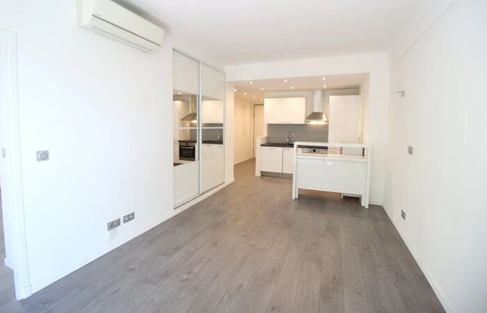 Appartement composé d'une entrée, d'un séjour avec cuisine ouverte aménagée et entièrement équipée. Double exposition, avec terrasse et balcon. Salle d'eau/WC. Placards dans séjour et chambre.