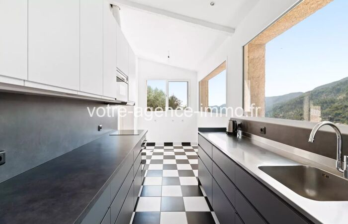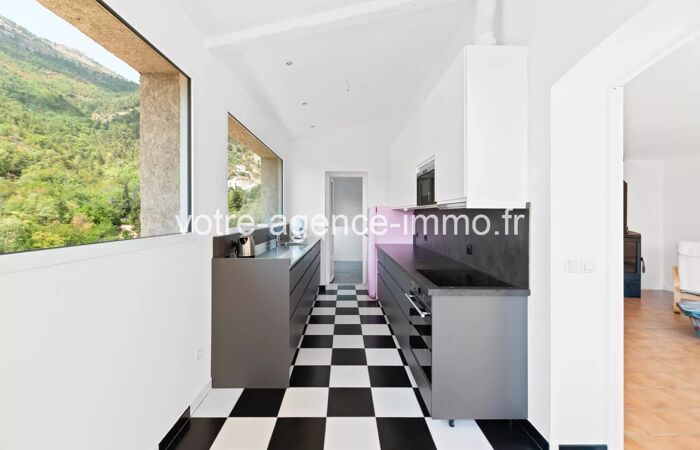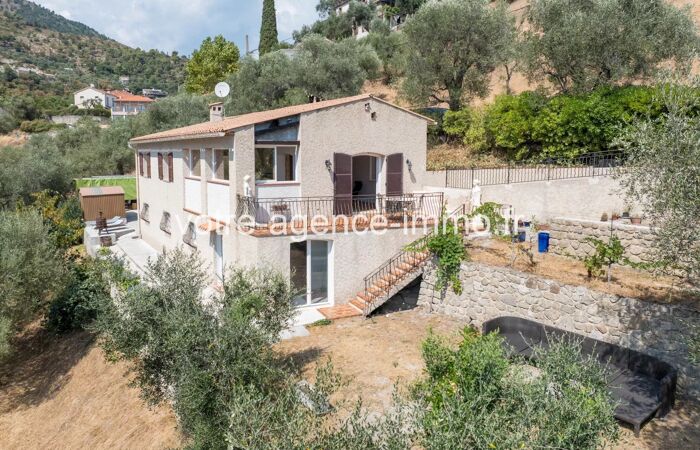 Maison de maçon 180 m2 - COARAZE Maison de maçon 180 m2 - COARAZE Maison de maçon en position dominante construite en 1983 offrant multiples possibilités, totalisant 180 m2 sur deux niveaux récemment rénovés. Située à 35 min de Nice, au pied du renommé village du soleil classé un des 100 plus beaux de France ! Elle se compose d’un plain pied de 98m2 avec un séjour sur terrasse, une cuisine semi ouverte aménagée et équipée, deux chambres, une salle de bain, une toilette indépendante et de nombreux placards, ainsi que d’un poêle à bois fonctionnel. Une trémie desservant 82 m2 actuellement composés d’une suite parentale avec salle de douche et WC (pouvant être individualisé), une chambre, une cuisine aménagée, une pièce de 18 m2 libre de toute imagination, un grand dressing. Chacunes d’elles avec portes fenêtres, fenêtres ou baies coulissantes donnant sur le jardin. Sa triple exposition vous baignera de soleil au coeur d’un terrain de 1300m2 en généreuses planches arborées de 17 oliviers, 2 abricotiers, 1 cerisier, 1 citronnier, 1 figuier, une vingtaine de pieds de vigne, murs en pierre de taille. Terrain pouvant accueillir une piscine. Deux espaces couverts en extérieur dont un en tôle, les quels bénéficient d'électricité. Vide sanitaire pouvant accueillir du rangement supplémentaire. Le bien est équipé de deux tableaux électriques avec défalcateur pouvant dissocier la consommation des deux niveaux en cas de division pour un besoin locatif par exemple. Au total, il serait possible de créer un 3 pièces, un 2 pièces et un studio ou deux 3 pièces. Toiture en très bon état, Dalle, murs et toit isolés, Raccordement tout à l’égout, Multiples stationnements, Fibre internet, Portail électrique. Foncier 2024 : 1005euros Les informations sur les risques auxquels ce bien est exposé sont disponibles sur le site Géorisques: georisques.gouv.fr