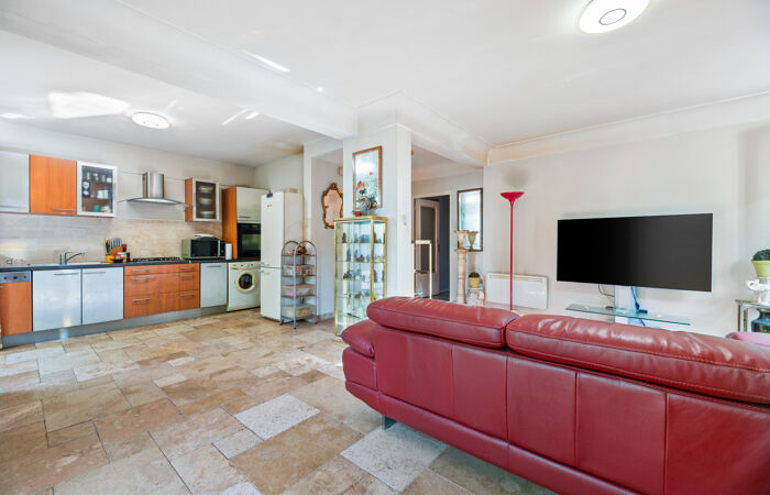 Appartement 4 pièces 85,71m² La Trinité Rare ! A La Trinité venez découvrir ce vaste rez-de-jardin dans une maison, au cœur d'un lotissement prisé et sécurisé ou règne le calme et la tranquillité à 15 minutes de la place Masséna. Cet appartement à rafraîchir vous séduira par sa belle pièce à vivre d'environ 37m², un dégagement desservant trois chambres, une salle d'eau avec toilettes et une salle de bain. Le séjour donne directement sur la terrasse de 25m² pour des repas en famille ou entre amis. Un superbe extérieur à aménager au grès de vos envies. Un cellier de 14m² vous débarrassera des vélos et autres objets encombrants. Egalement 3 places de stationnement privatives à l'intérieur même de votre propriété sont à votre disposition avec portail électrique Prévoir un rafraichissement total. Toutes les commodités sont à 1 minute à pieds, commerces diverses, médecins, activités sportives et culturelles. Les transports vous tendent les bras, bus, train et le tramway est prévu en 2028. A vivre comme une maison, très rare sur ce secteur ! Ch:200euros/an