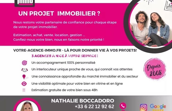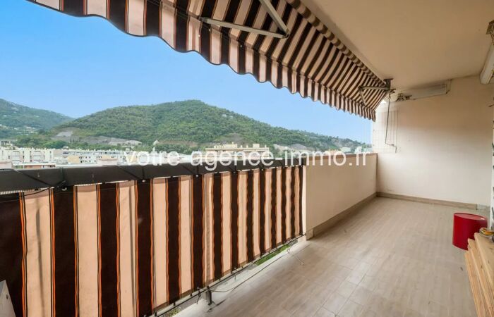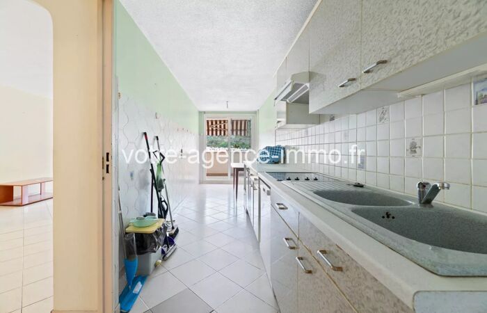 Nice Ariane 3 pièces 69,35m² Garage-cave SOUS COMPROMIS Nice quartier, quartier Ariane, Rue Guiglionda de Ste Agathe, dans une résidence recherchée et sécurisée, grand et lumineux 3 pièces traversant 7eme/9étage avec ascenseur, vue dégagée. Ce bien est à rafraîchir. Un vaste hall d'entrée dessert un séjour, une cuisine actuellement séparée mais possibilité d'ouvrir pour une surface totale d'environ 32m² d'espace de vie. Le séjour et la cuisine donne sur la terrasse de 8m² avec vue sur l'intérieur de la copropriété et ses jardins. Un dégagement distribue 2 chambres dont une avec balcon et l'autre avec placard. Une vaste salle de bains et un toilette indépendant. Double vitrage sur la totalité du bien. Beaux volumes, terrasse profonde. Pour votre confort, ce bien est vendu avec un garage en sous-sol et une cave en rez-de chaussée. Photos en cours. Nbres de lots:NC Charges/mois:194euros(tout collectif) Ce bien est soumis au statut de copropriété. Les informations sur les risques auxquels ce bien est exposé sont disponibles sur le site Géorisques: georisques.gouv.fr