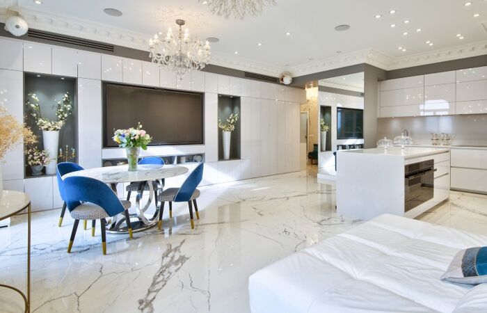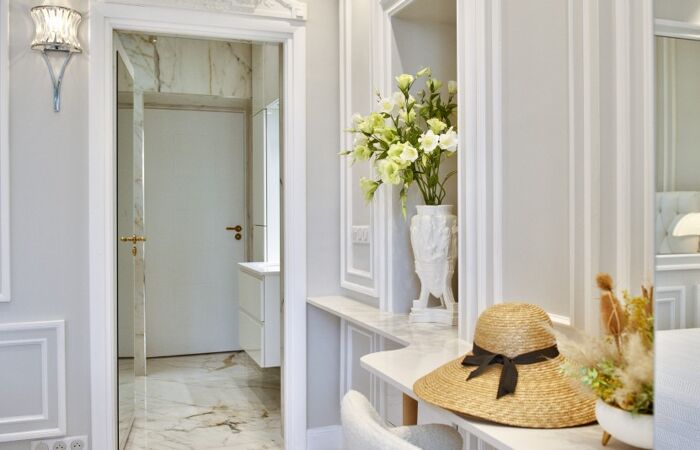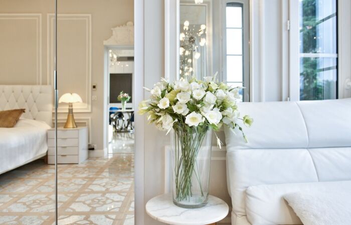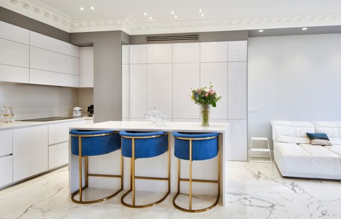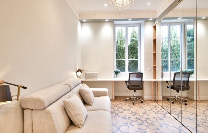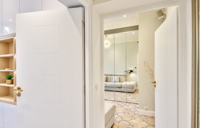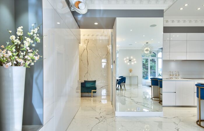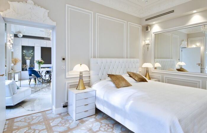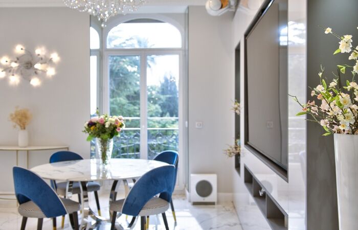 Dès l'entrée, belle hauteur sous plafond, moulures, rosaces élégantes, lustres en cristal, et sols en marbre créent une atmosphère à la fois majestueuse et chaleureuse. Chaque élément a été pensé avec exigence, des meubles sur mesure aux finitions irréprochables.