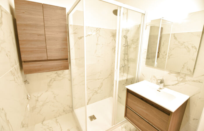 Studio vide de 28 m2 composée, d'une entrée, d'un séjour / cuisine aménagée et équipée (plaque de cuisson hotte aspirante refrigérateur / congélateur four microondes), d'une salle de bains / WC et d'un dressing.