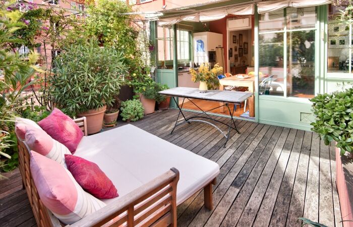 Cet appartement situé au calme total offre une terrasse arborée de 22m² exposée plein sud.