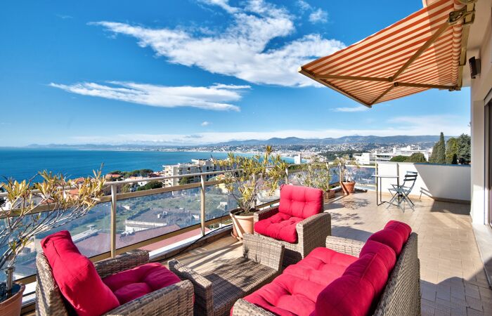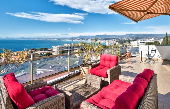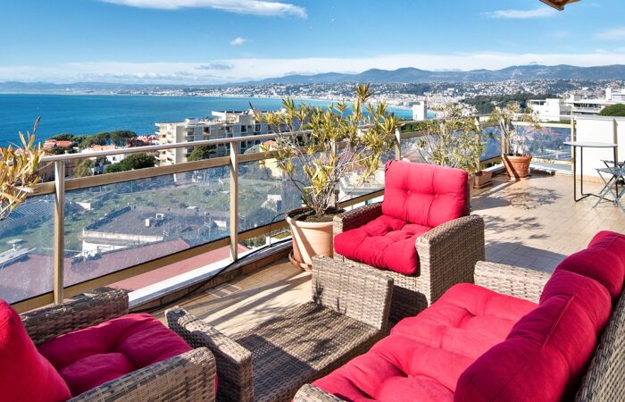 Ce superbe 4 pièces de 86 m² loi Carrez et 95 m² de surface totale comprend, un séjour lumineux avec cuisine aménagée, prolongé par une véranda à usage de salle à manger. L'ensemble s'ouvrant sur une vaste terrasse de 49 m² offrant une vue mer époustouflante sur la mythique Baie des Anges. L'espace nuit se compose de trois chambres avec rangements, ainsi que deux salles d'eau avec wc. Le bien est équipé de la climatisation.