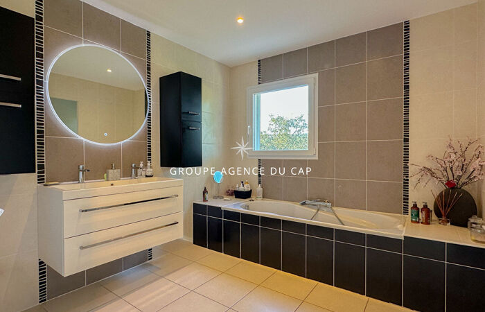 Située dans un environnement calme et verdoyant à seulement 5 minutes du centre et des plages, cette magnifique villa contemporaine de 165 m² construite en 2012 vous séduira par ses volumes, son confort moderne et ses prestations de qualité.