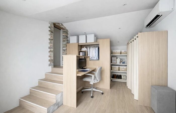 Un espace bureau, complété par une buanderie / dressing, apporte un vrai plus au quotidien, que ce soit pour le télétravail ou l’organisation de la maison.