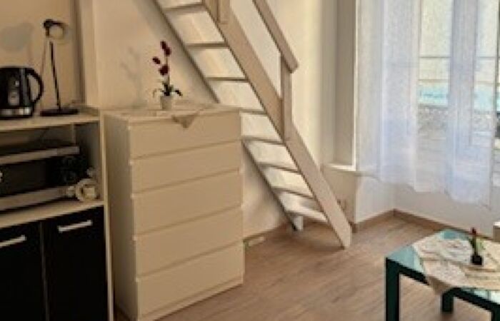 Dans immeuble niçois, studio meublé avec mezzanine, en location longue durée , situé au 1er étage. Il se compose d'une entrée, une salle d'eau/wc, une pièce principale avec coin cuisine aménagée, le coin nuit est en mezzanine. DISPONIBLE DE SUITE .